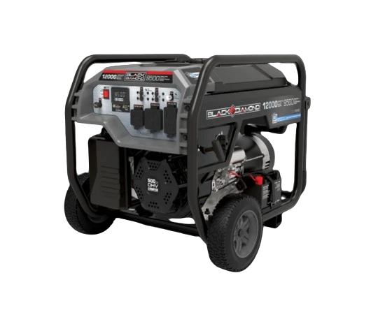 Black Diamond 9500-Watt Electric Start Portable Generator with CO Shield is designed with your safety and convenience in mind. A cost-effective solution that delivers power and peace of mind, this generator will provide all the backup power you need for power outages and emergencies. For projects, the 500cc single-cylinder OHV engine has what it takes to handle the multiple power tools and large equipment you need to get the job done. You will appreciate the handy electric start with included battery, plus Cold Start Technology ensures a quick start in cold weather. The Intelligauge with Power Meter monitors voltage, frequency and operating hours, while the foldaway U-shaped handle and never flat tires make it easy to move wherever you need it. This generator also offers peace of mind with its CO Shield which detects unsafe carbon monoxide levels and will shut off the motor.Â