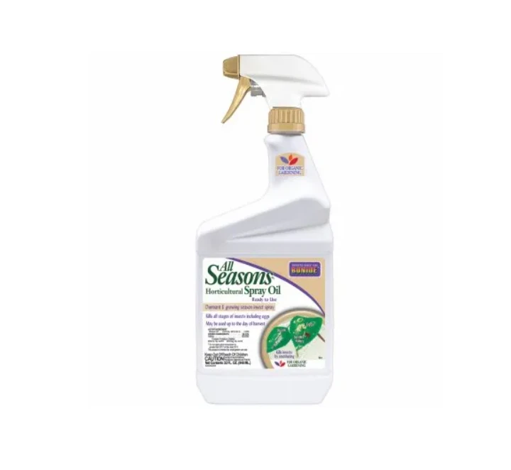 A superior type of paraffinic oil that may be used as a growing season spray, dormant spray (no leaves) or delayed dormant (green tip) spray to control overwintering eggs of red spiders, scale insects, aphids, bud moths, leaf roller, red bug, codling moth, blister mites, galls, whitefly, mealy bugs and other insects and diseases. Highly recommended for use on fruit trees, shade trees, shrubs, ornamentals, roses, and vegetables. Safe and pleasant to use.