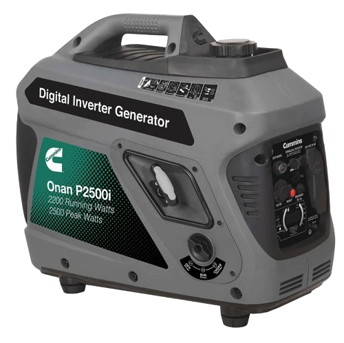 Looking for a rugged and reliable generator that is also quiet and portable? The Cummins Onan P2500i inverter gasoline generator offers 2500 peak watts of power in a lightweight, easy-to-carry package. The 1-gallon fuel tank provides 10 hours of run time at 25% load while producing low THD (total harmonic distortion) power that protects your phone, tablet, and other sensitive electronics. With a double-insulated housing, the generator operates as quietly as 52 decibels, which will keep your camping neighbors happy. The onboard LED display keeps you informed on the remaining run time, power output, fuel level, voltage, and lifetime run hours.