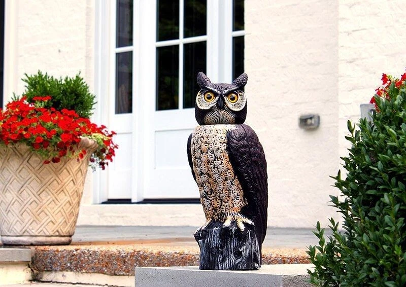 Second-only to the real Great Horned Owl, this fake owl features incredibly realistic eyes, and details, which will not only protect your fruit and herbs from rodents but will also add a great natural touch to your garden. Just like the real nocturnal bird of prey, this scare owl will rotate its head up to 360 degrees and will intimidate and frighten birds, raccoons, rabbits, squirrels, or other pests.