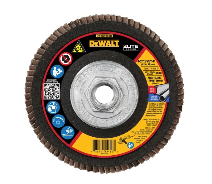 DEWALT ELITE SERIES Jumbo Flap Disc features a premium ceramic cloth for long life and fast material removal. This jumbo flap disc is best for grinding your toughest applications and also features a 5-8/11 in. arbor for fast and easy tool-free changes.