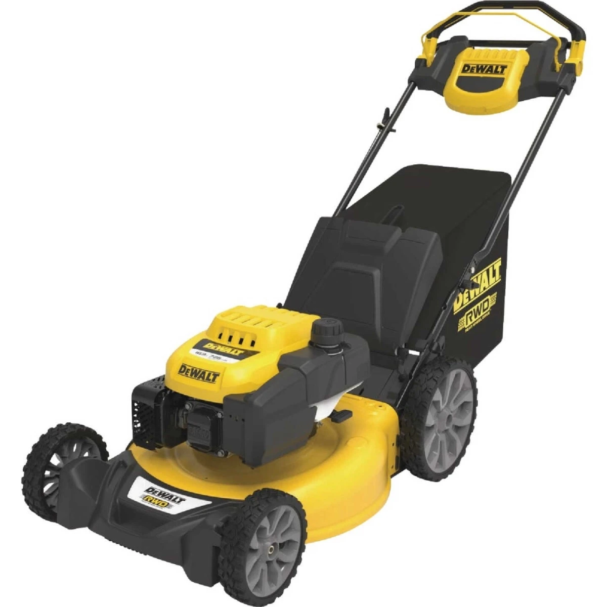 Self-propelled gas mower has a 15 gauge steel 3-N-1 deck with mulching, bagging and side discharge. 196cc commercial grade engine with E-GOV delivers long life, lower noise and less maintenance. High rear wheels allow for maximum maneuverability on hilly terrain. My Speed Self Drive handle controls adjust to the users walking speed. Easily adjusts from 1.25 In. to 3.75 In. cutting heights with a single lever.