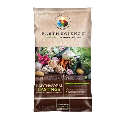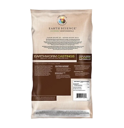 Earth Science Earthworm Castings are 100% vermicompost and never contain fillers of any kind. Worm castings are a natural fertilizer full of organic matter that feeds the beneficial microbes in your soil. Worm castings improve your soil structure so it can retain more water and nutrients, leading to healthier plants. Earthworm Castings can be worked into the soil at the time of planting or can be used as a top dressing for shrubs, flowers, raised gardens or potted plants. Earth Science Earthworm Castings can also be used to make compost tea or be added to compost piles.