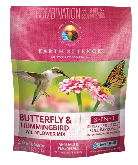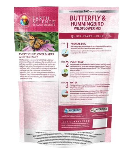 Wildflowers are a powerful force that help sustain our environment. Research has shown that recent declines in pollinator populations may be attributed, at least in part, to a decline in native flower species commonly found in wildflower fields. Individual efforts to create more gardens and landscapes that can serve as habitats for bees, butterflies, birds, bats and other pollinators can make a difference. Earth Science Butterfly & Hummingbird Seed blends are beautiful, require very little maintenance, and are designed with pollinators in mind.