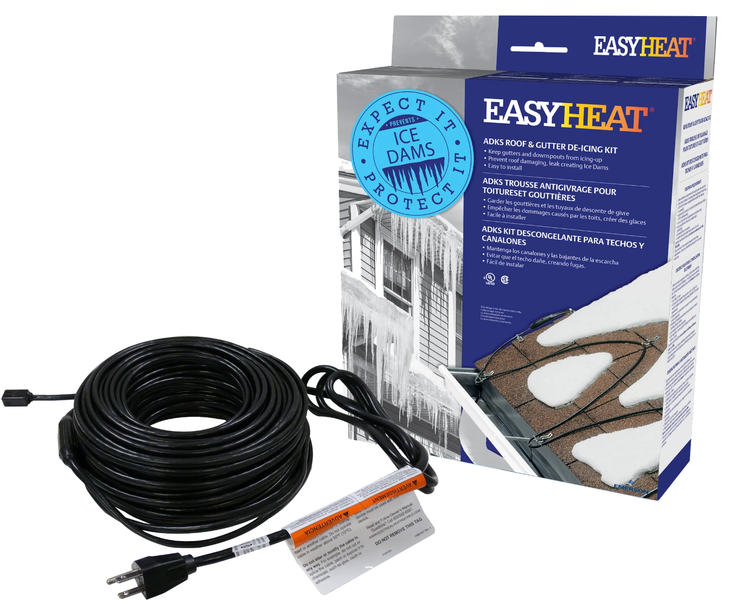 ADKS roof and gutter de-icing cables help end costly icedamage by preventing ice dam formation and promoting<br>the free flow of water through gutters and downspouts to ground level.