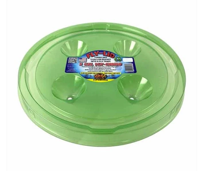 Take control of big fly problems with the 5 Gal Fly-Condo. Unlike other traps that rely on poison or sticky adhesive to trap flies, the fly lid allows you to turn an ordinary 5 gallon bucket into an effective, non-toxic large sized fly trap. Simply bait the bucket with the attractant of your choice. You can use common ingredients from around the house like vinegar, fruit, honey… sometimes even red wine can be the best fly killer! Once the flies catch the scent of your bait, they will fly down the funnels and won’t be able to get back out. The Fly-Lid Bucket Lid is discreet and does not rely on foul odors to bring in the flies, so you can place it next to your house or patio if you are using a bait that is not stinky.  If you are wanting to take care of a big fly problem outside, you can use a more potent bait (a few pieces of shrimp in water really makes the flies go crazy after a day or so). You can catch hundreds of thousands of Flies in a single bucket! When you want to empty the contents, just remove the lid, dump the bucket and you can reuse the lid to catch more flies in the same bucket!
