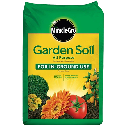 Miracle-Gro® All Purpose Garden Soil is enriched with continuous release plant food to help get plants off to a great start. It will feed them up to 3 months and improve the existing soil so your plants can build strong roots.