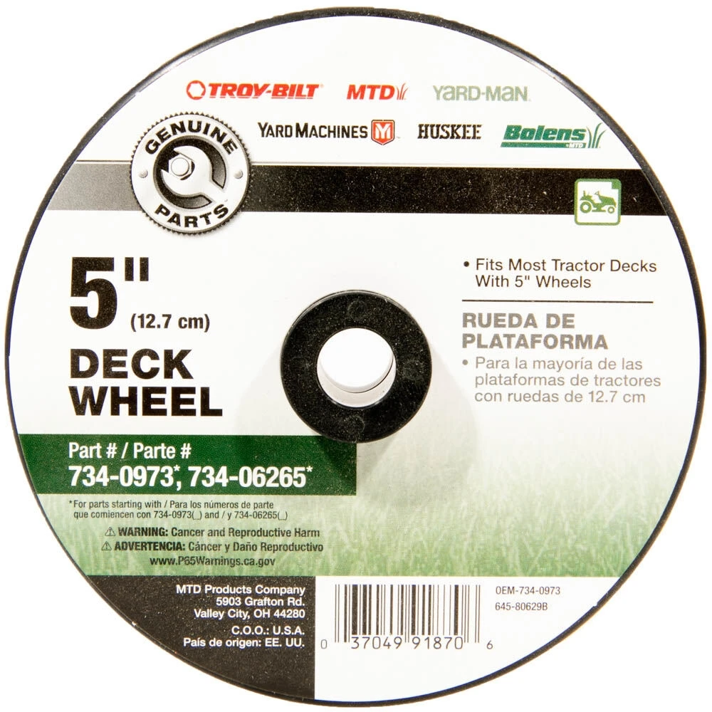 Keep equipment running smoothly with this MTD Deck Wheel. These lawn mower deck wheels are compatible with riding mowers with a deck size of 32″, 38″, and 42″.
