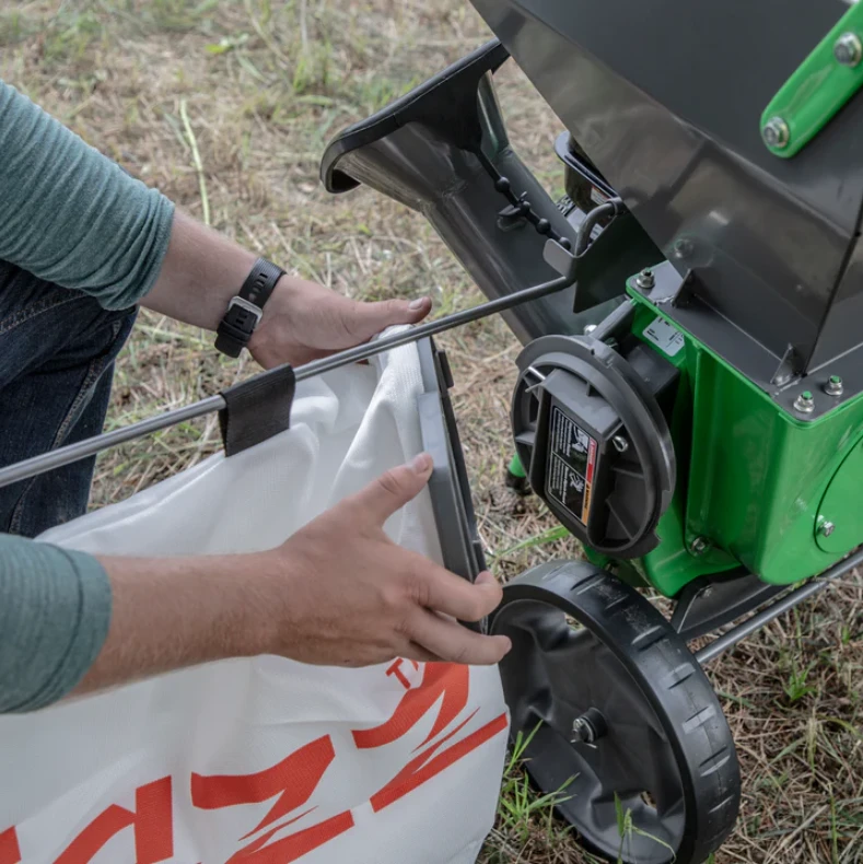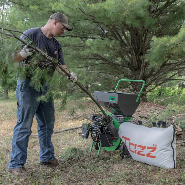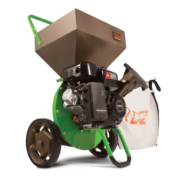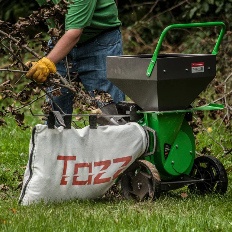 The Tazz Chipper Shredder is powered by an easy-starting and powerful engine, strong enough to chip branches up to 3” in diameter. The rugged steel hopper stands at only 34” high, so yard waste can be dropped in with minimal effort while larger branches can be fed into the limb chute.