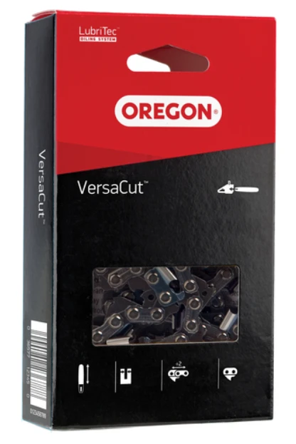 The Oregon 91VXL052G 14″ VersaCutâ„¢ Saw Chain is a high performance 3/8″ Low Profileâ„¢ chain. This .050″ gauge chain is the ideal choice for arborists and orchardists who use lightweight chain saws but need the performance a professional requires. Longer cutter top-plates offer longer cutting life for the user. Low profile, semi-chisel cutters provide an aggressive cutting edge with a forgiving sharpening profile.