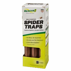 The RESCUE! Spider Trap is ready right out of the box — just place it where spiders are typically found indoors. With four entrances and hundreds of glue dots, spiders will travel to the interior of the trap instead of merely congregating on the edges. This design allows many more spiders to be caught. And with two sides of glue, a quick flip of the trap keeps you in the spider-catching business. The RESCUE! Spider Trap catches a variety of biting and poisonous spiders common in the home, including: black widow spiders, hobo spiders, brown recluse spiders, sac spiders, hobo spiders, jumping spiders and wolf spiders.