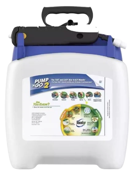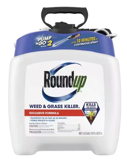 Take control of your outdoor space with Roundup Weed and Grass Killer with Pump ‘N Go 2 Sprayer. It kills tough weeds and grasses to the root, including dandelion, crabgrass, poison ivy, clover (red and white), spotted spurge, and other broadleaf weeds. It is rainproof in as fast as 30-minutes, produces visible results in hours, and allows you to plant 1-days to 30-days after application (see booklet for details). Use Roundup Weed and Grass Killer with Pump ‘N Go 2 Sprayer in and around flower beds and perennial landscape plants, around trees and shrubs, on patios, walkways, and driveways, gravel, or mulch beds, along fences and foundations, and edging around foundations and retaining walls.