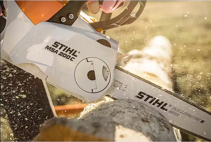No pulling on cords, fuel mixing or complicated startup procedures. With the MSA 200 C-B chainsaw, just squeeze the trigger and start cutting. In addition to easy starting, our battery powered tools produce zero exhaust emissions and are quieter than their gasoline-powered counterparts, making them an ideal choice for areas with emission or noise restrictions. Powered by an interchangeable STIHL Lithium-Ion battery, this chainsaw delivers the speed, cutting capacity, and run time to take on just about any cutting job on your property. The STIHL MSA 200 C-B is a cordless chainsaw tough enough to carry the name STIHL.