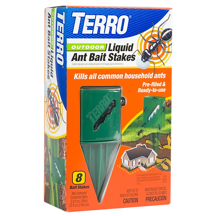 Attracting and killing outdoor ant colonies. Kill ants before they enter your home with these pre-filled, ready-to-use ant bait stakes. A specially formulated liquid ant bait solution provides effective, long-lasting control of all common household ants.
