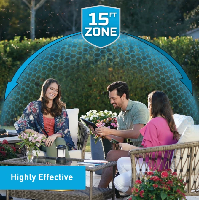 The Thermacell Patio Shield Mosquito Repellent Lantern effectively repels mosquitoes by creating a 15 feet zone of protection. It’s small and compact design along with ambient light feature makes it perfect for any deck or patio. Use your Patio Shield repellent for entertaining guests, gardening, camping, around the backyard and more.