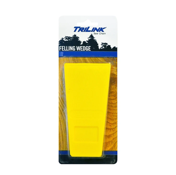 The TriLink plastic felling wedge is used to promote safety while operating chainsaws. This wedge is designed to helps prevent pinching of the chainsaw guide bar and chain, it also aids in directional felling of trees and buckling.