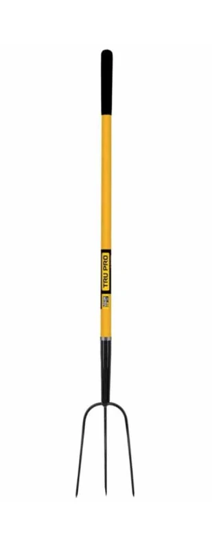 TRU PRO 3 Tine Manure Fork 54 In. w/ Fiberglass Handle is the contractor’s choice for professional use. It features a one-piece forged head for added strength.