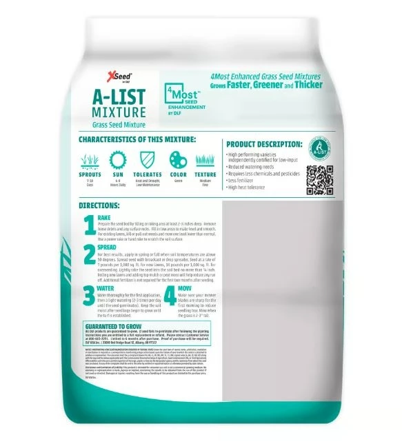 X-Seed’s A-LIST Low Input Grass Seed Mixture is a sustainable lawn solution formulated for eco-conscious homeowners. Designed with varieties approved by the A-LIST (Alliance for Low Input Sustainable Turf), this mix performs with less fertilizer, water, and mowing — while still delivering a deep green, dense lawn. Great for new lawns or overseeding in sun or moderate shade areas, this 3 lb bag covers up to 750 sq ft and is perfect for achieving a healthier, more sustainable yard.